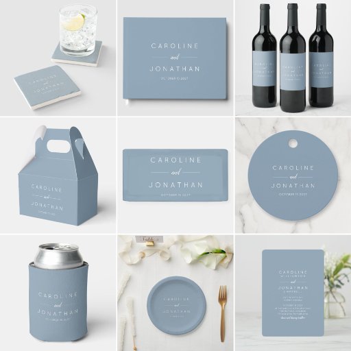 Modern Minimalist Script Wedding - Dusty BlueCriado por Opal Ellery