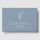 Este livro de registro de casamento apresenta o clássico monograma floral francês em azul desbotado e branco com uma escrita moderna em caligrafia. O presente perfeito para os recém-casados capturarem os votos de felicidade dos convidados.