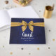 Fundo azul escuro impressionante amarrado com uma imagem de arco dourada. Papel de carta está todo impresso, sem fita verdadeira. Personalize nossa bela papelaria com seus detalhes de evento fácil e rapidamente, basta pressionar o botão personalizar. Está incluída a coordenação no verso. Itens correspondentes para concluir sua coleção de eventos estão disponíveis em nossa loja Zazzle!