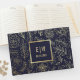 Marinho Elegante Azul | Livro de Convidados de Casamento personalizado com design de Padrão Floral de Folha de Ouro. Convites de Casamento, Cartões salve a data, Bridesmaid para serem Cartões de Solicitação, Cartões de Obrigado, Favoritos de Casamento e Presentes disponíveis na Categoria Simples e Elegante de nossa loja.