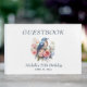 Pássaro azul bonito e flores cor-de-rosa, o 50º livro de festa de aniversário feminino personalizado com o nome e a idade do convidado de honra, e sua data de festa. Entre em contato comigo para obter assistência com suas personalizações ou para solicitar outros produtos Zazzle correspondentes ou coordenadores para o seu partido.