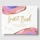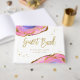 Este elegante e moderno livro de convidados do casamento apresenta pedras de cores rosa e azul-d'água com dourado falso e com acentos.
