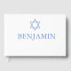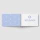 Um livro de hóspedes do Dia da Cerimônia Hebraica. O modelo tem um tema azul. O modelo de design tem um texto colorido que é facilmente alterado para sua informação com a data na coluna. As costas têm uma estrela branca de David repetindo sobre um fundo azul.