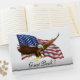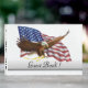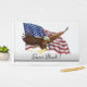 Um cartão perfeito para dizer obrigado. Uma bandeira americana com uma águia careca Por favor, triplique sua ortografia e datas.