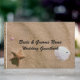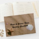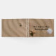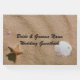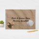 Areia, conchas, estrelas-do-mar, e livro de convidados de casamento de areia dólares.