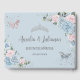 Prepare seu dia especial para os anos virem com um livro de hóspedes. Apresentando bonito flores azuis e cor-de-rosa pálidas e borboletas azuis e cor-de-rosa. Personalize-o com seus detalhes de forma fácil e rápida, basta pressionar o botão personalizar para reorganizar e formatar o estilo e a colocação do texto. c) O Feliz Cat Studio