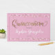 Personalize os detalhes desse livro convidado cor-de-rosa, branco e ouro, elegante e moderno quinceanera. Apresentando um confete cor-de-rosa e branco e um guião dourado para a "Quinceanera". Personalize o nome e a data do celebrante de 15.