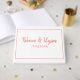 Um design bonito e elegante, este livro de hóspedes apresenta um coral e um design branco. Há uma borda de coral com o nome do casal e a data de casamento listados. O fundo é branco. Personalize seu livro de convidados de casamento hoje!