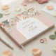 Um lindo pessegueiro personalizado e um livro de casamento floral de ouro. Com um elegante design floral de aquarela são perfeitos para casamentos de primavera e verão. Localizar itens correspondentes no meu compro.