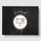 Um livro de convidados de casamento com um design moderno - lábios de kissy cor-de-rosa glamourosos e uma ilustração masculina retrorreflectora do bigode. Colocado sobre um fundo de quadro negro com um quadro circular de gradiente dourado no centro. O texto diz que o Sr. e a Sra. podem personalizar com seus nomes e data de casamento.