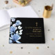 Um livro de hóspedes fúnebre e elegante, preto e ouro, personalizado, azul floral cristão, celebrações da vida, livro de hóspedes fúnebres. Projetado por Thisnotme©