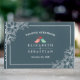 Modelos de Casamento de Guestbook - Casal Elegante de Azul Vintage e Branco Floral Botânico e Pássaros do Amor. Um Design perfeito para o seu grande dia. Todo estilo de texto, cores, tamanhos podem ser modificados para ajustado das suas necessidades.