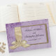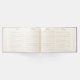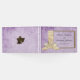 Este encantador livro de hóspedes roxo apresenta um tema de feto distinto, com o design a apresentar um olhar muito rústico com um design de pergaminho roxo desvanecido como sua canvas. Na frente há uma falso armação de madeira, decorada com uma fita grande, branca, de satírico, do lado esquerdo. Há também um par de sinos de casamento nas costas. Todos os detalhes podem ser personalizados de acordo com o caso.