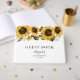 Livro de hóspedes do tema floral russo e boho com chá de fraldas ilustração aquosa de girassóis com hálito de bebê.
