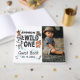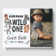 Um livro de hóspedes moderno e selvagem de um primeiro aniversario. Maneira perfeita de coletar memórias e desejos para o garotinho. Design com foto de aniversariante, animais selvagens boho na frente. Personalize com um nome e data.