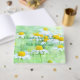 Margaridas brancas e amarelas florescem num campo de verde para um livro convidado para o seu casamento. Uma letra elegante na casa da moeda escura lista os nomes de cheio do casal, que é usada com uma fonte menor e contrastante para a data do casamento e a localização do casamento. Lembre-se de substituir suas informações na coluna por um livro de hóspedes verdadeiramente exclusivo para seu evento