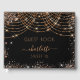 Um guia para uma festa de aniversário feminina e glamourosa 16, 16. Um fundo preto clássico com rosa dourado poeira brilhante e cordas leves. Personalize e adicione um nome e uma idade. O nome é escrito com um moderno estilo escrito à mão com traços. Adicione seu texto na coluna. Para manter as hastes, exclua apenas o nome da amostra, deixe os espaços ou emoji na frente e depois do nome.