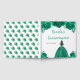 This Quinceanera guest book features faux glitter green floral flowers and a beautiful princess with brown hair and an elegant dress. This is perfect for a Quinceanera birthday party.