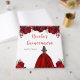 This Quinceanera guest book features faux glitter red floral flowers and a beautiful princess with brown hair and an elegant dress. This is perfect for a Quinceanera birthday party.