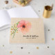 Um lindo livro de hóspedes de casamento feito em um olhar de burlap natural, com gráficos de aquarela de um papoila de coral. Personalize os campos de texto em preto para seu dia especial.