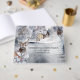 Uma bela ilustração com aquarelas, que inclui uma área florestal que tem árvores de abeto e uma cabana de madeira na distância abaixo da neve coberta por montanhas. Um belo solteiro percorre o topo das folhas de cinza prateada enfeitadas com bagas de laranja. Há modelos de texto na coluna e cobrir frontal para sua redação personalizada. São ideais para comemorações de casamentos no inverno e festas e eventos por país ou floresta.