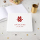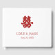 Uma elegante e romântica design do livro de convidados com a personagem chinesa "Dupla Felicidade" na caligrafia. A "Felicidade Dupla é um conhecido personagem chinês que é tipicamente usado em casamentos chineses como sinal de sorte, felicidade e amor pelo novo casal. É uma obrigação para os Casais que querem honrar a sua família e origem chinesa.