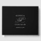 Este livro de visitas de casamento com monograma preto escuro e caligrafia romântica é perfeito para um casamento simples. O design clássico moderno apresenta redemoinhos elegantes e floreios caprichosos com tipografia elegante e manuscrita em um fundo preto escuro. Personalize a capa e a lombada com os nomes do casal e a data do casamento.