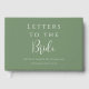 Personalizar Texto Personalizado Letras Personalizadas para o Bride Script Lettering elegante "Cartas para a Noiva". Uma bela manutenção em verde simples, sábio, verde claro, terra e branco com texto elegante e estilizado em bloco e tipografia de caligrafia de script. Personalize adicionando o nome da noiva e a data do chá de panela. Há espaço na parte de trás do livro para adicionar sua própria citação ou dizer para a noiva ser. Perfeito como presente das damas de honra, ou para um livro de hóspedes de chá de panela. Faça também um excelente de recorte para a noiva para o tesouro sempre.