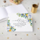 Um livro de hóspedes de casamento radiante e colorido, com uma bela coloração aquosa, folhagem botânica verde e folhas de eucalipto e elegantes flores brancas e ensolaradas. Capture as memórias sinceras de seu dia especial com este elegante livro de convidados de casamento amarelo floral, branco e azul. Apresentando um sofisticado design adornado com delicados florais amarelos, florais brancos e sofisticados sotaques azuis, este livro convidado exude romance e elegância eterno. Os refinados detalhes de tipografia e aquarela criam uma estética fresca e convidativa, perfeita para casamentos de primavera e verão. Ideal para o jardim, a praia, ou para as celebrações do campo, este belo livro de hóspedes desenhado oferece um bem-estar apreciado onde os entes queridos podem deixar seus bons desejos, fazer um lembrete duradouro de sua alegria.