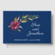 Este livro de hóspedes do casamento apresenta um belo gráfico floral burgundy, acentuado com folhagem verde num fundo azul marinho. O texto personalizado permite adicionar os nomes da noiva e do noivo e a data do casamento.