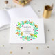 Este belo livro de convidados botânicos para o casamento, de turquesa, apresenta uma bela coroa azul verde de folhagem bonito, tulipas cor-de-rosa e flores amarelas que é completada por belas borboletas que voam à volta da borda da vinha. Personalize com o novo nome do casal e a data do casamento para os convidados assinarem numa tarde de verão.