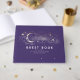 Noite estrelada e cena noturna da lua crescente roxo e livro de convidados dourados