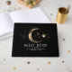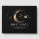 Noite estrelada e cena cósmica da lua crescente - livro de hóspedes preto e ouro