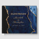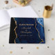 Design do livro de hóspedes de casamento. Elegante e chic, este livro de convidados de casamento Glitter Agate, azul e dourado, é fácil de personalizar com o nome da noiva e noiva e sua data de casamento.