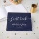 Este livro de visitas com letra de assinatura minimalista azul marinho é perfeito para a celebração do seu casamento. Concebido por Thisisnotme©