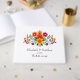 Dê as boas-vindas aos seus convidados com estilo neste lindo livro de visitas de arte popular floral mexicana! Com um design floral vibrante e colorido com texto personalizável para os nomes do casal, data do casamento ou detalhes do evento, este livro de visitas é perfeito para casamentos e celebrações boho, rústicos ou temáticos culturais. Um belo souvenir que captura mensagens sinceras de entes queridos, tornando seu dia especial inesquecível.
