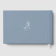 Este livro de visitas de casamento apresenta o clássico monograma floral francês em azul empoeirado e branco com um script de caligrafia moderno. O presente perfeito para os recém-casados capturarem os votos de felicidade dos convidados.