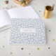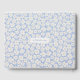 Chic e fresco com charme juvenil. Este livro de convidados do casal encanta com um conjunto de fontes modernas e de tendências, nomes de casais emoldurados num retângulo branco-claro contra um fundo floral azul e branco. O verso inclui a data do evento.