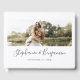 Um adorável livro de convidados de boho de fotos, com solteiro de fotografia horizontal da noiva e do noivo em fundo branco. Os nomes dos casais aparecem em um script de escrita manual de cinzas escuras, com a data abaixo na fonte clássica da cinza. Correspondência de cinza se o texto aparecer na coluna.