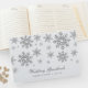 Estes livros de visitas de casamento personalizáveis apresentam flocos de neve modernos em brilho falso prateado. Adicione o nome do noivo e da noiva e a data do casamento para personalizar.