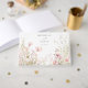 Este design apresenta uma ilustração delicada em aquarela de flores silvestres em tons de verde e rosa.