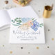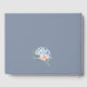 Este livro de visitas de casamento de florais azul empoeirado é perfeito para um casamento de primavera ou verão. O design delicado apresenta peônias azuis claras dispostas com flores de pêssego e creme em um buquê lindo. Personalize a capa frontal com os nomes da noiva e do noivo e a data do casamento.