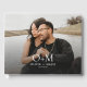 Um simples momento de fotografia noivado com uma moderna sigla minimalista do monograma e nome. Substitua o exemplo de foto por sua foto de casal favorita.