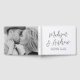 Adicione um toque personalizado à sua cerimônia de casamento com este livro de hóspedes do Simple Black Script. O design apresenta seus nomes exibidos em um roteiro elegante de caligrafia preta com sua data de casamento e sua localização mostrada abaixo. Adicione seu texto personalizado à coluna do livro de convidados preto e branco. A parte de trás do livro de hóspedes apresenta a sua fotografia horizontal do noivado.