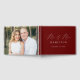 Um livro de convidados de casamento elegante com "Sr. e Sra." exibido em um moderno roteiro de caligrafia branca em um fundo burgundy. Personalize a frente do simples livro de convidados do casamento com seu sobrenome e data do casamento. A parte de trás do livro de hóspedes mostra a sua foto de noivado horizontal. Adicione seu nome casado e data de casamento à espinha do livro fotoconvidado.