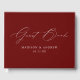 Livro de convidados elegante com "Guest Book", exibido em um moderno roteiro de caligrafia branca em um fundo de burgundy enferrujado. Personalize a frente do simples livro de convidados do casamento com seus nomes e data do casamento. A parte de trás do livro de hóspedes mostra a sua foto de noivado horizontal. Adicione seu nome casado e data de casamento à espinha do livro de hóspedes.