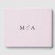 Livro de convidados elegante com "o casamento de", exibido em um moderno roteiro de caligrafia negra em um fundo roxo lavanda. Personalize a frente do simples livro de convidados do casamento com seus nomes e data do casamento. A parte de trás do livro convidado da lavanda mostra as iniciais do seu monograma. Adicione seu nome casado e data de casamento à espinha do livro de hóspedes.