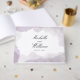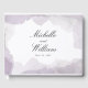 Um elegante design de casamento com uma clara cor d'água roxa pintada de borda em um fundo branco desenhado por Shelby Allison.