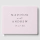 O livro de convidados do casamento elegante com os seus nomes e a data do casamento em letras negras num fundo lavanda-roxo. Personalize a espinha do simples livro de convidados de casamento com seu nome casado e data de casamento.