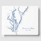 Procurando um livro de hóspedes para seu casamento em Atlantic City, NJ? Este livro de hóspedes do mapa Chesapeake Bay apresenta um mapa desenhado manualmente da área da Baía de Chesapeake com um pequeno coração sobre a Cidade do Atlântico (você pode mover o coração clicando em "Editar usando a ferramenta design" em "personalizar"). Personalize-o com o nome do casal e a data do casamento no cobrir e uma foto no verso